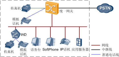 - 模拟話(huà)機(jī)、傳真機(jī)可(kě)以通(φΩtōng)過模拟電(diàn)話(huà)線接入U1981統一(yī)網關,IP話(huà)機(jī)和(hé)SoftPhone終端可( ₽kě)以通(tōng)過IP網絡接入U1900統一(yī)網關。