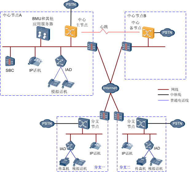 - 中心節點和(hé)本地(dì)節點分(fēn)别通(tō∑★ng)過數(shù)字中繼或模拟中繼出局至PSTN。